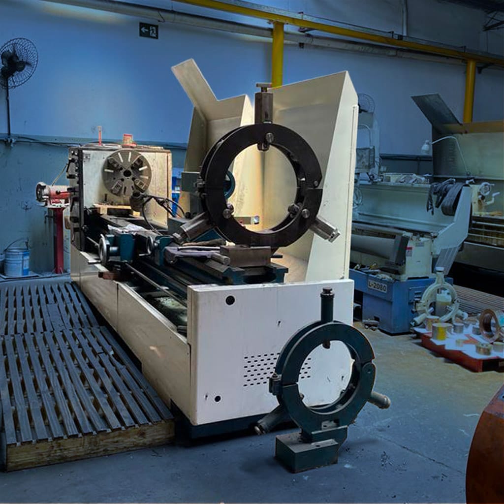 | Tornos Horizontais de Usinagem | Torno 1 - Romi ES40 - Ø300 x 1500 mm Torno 2 - Clever L2680 - Ø400 x 2000 mm Torno 3 - Clever L2080 - Ø508 x 2000 mm Torno 4 - Nardini ND325 - Ø560 x 2250 mm Torno 5 - Romi ES40B - Ø700 x 3000 mm Torno 6 - Nardini Diplomat NZ VS - Ø630 x 5000 mm Torno 7 - Nardini Diplomat AM500VS - Ø1000 x 9000 mm |
