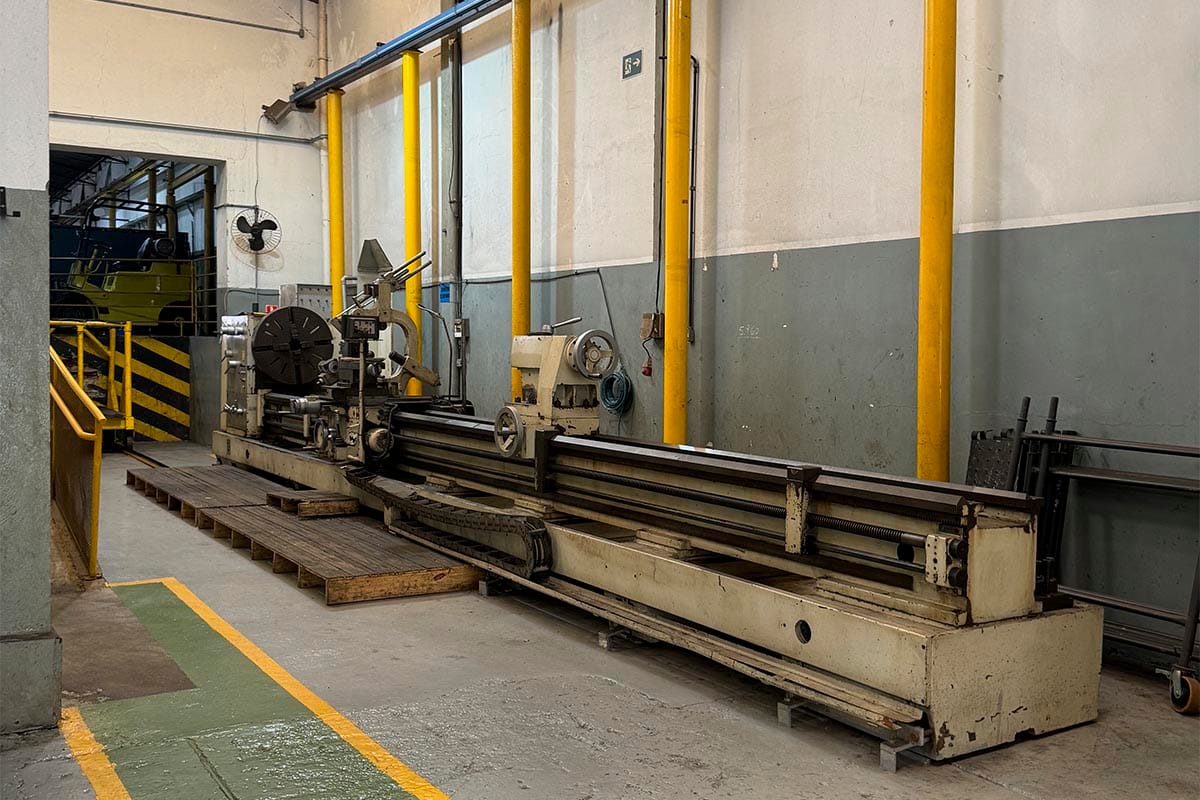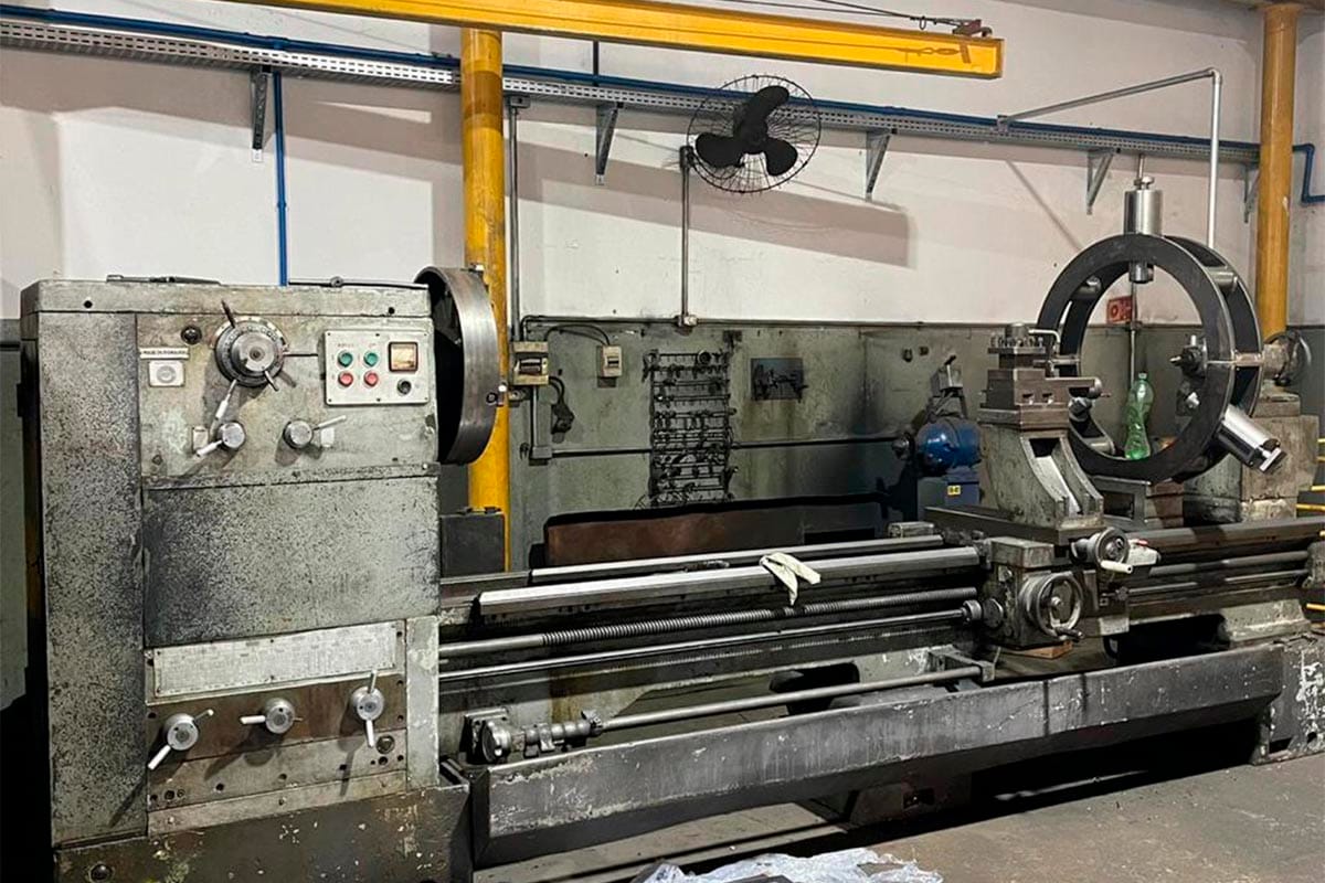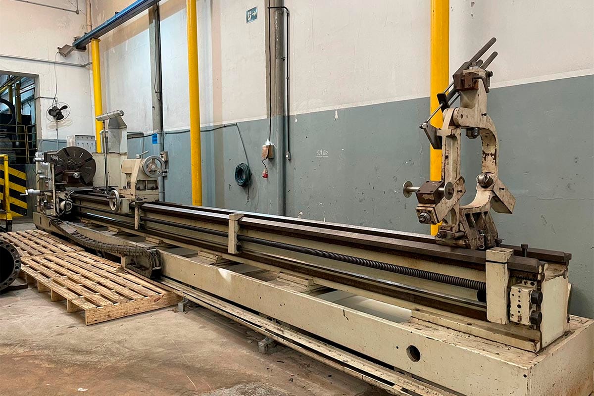 | Tornos Horizontais de Usinagem | Torno 1 - Romi ES40 - Ø300 x 1500 mm Torno 2 - Clever L2680 - Ø400 x 2000 mm Torno 3 - Clever L2080 - Ø508 x 2000 mm Torno 4 - Nardini ND325 - Ø560 x 2250 mm Torno 5 - Romi ES40B - Ø700 x 3000 mm Torno 6 - Nardini Diplomat NZ VS - Ø630 x 5000 mm Torno 7 - Nardini Diplomat AM500VS - Ø1000 x 9000 mm |